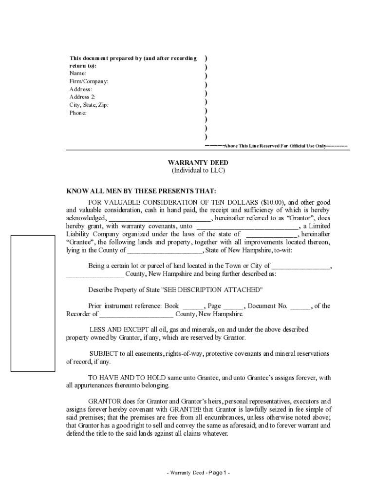 Get the free New Hampshire Deed Template - NH PDF Forms
