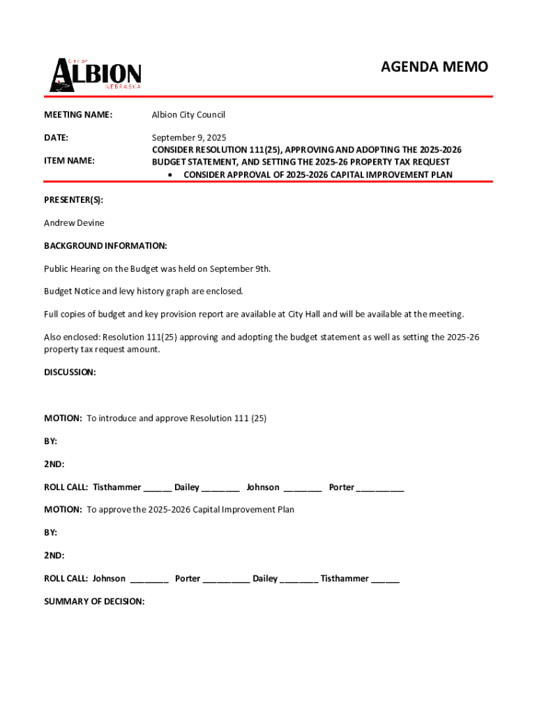 Get the free Budget Summary continued on Page 2