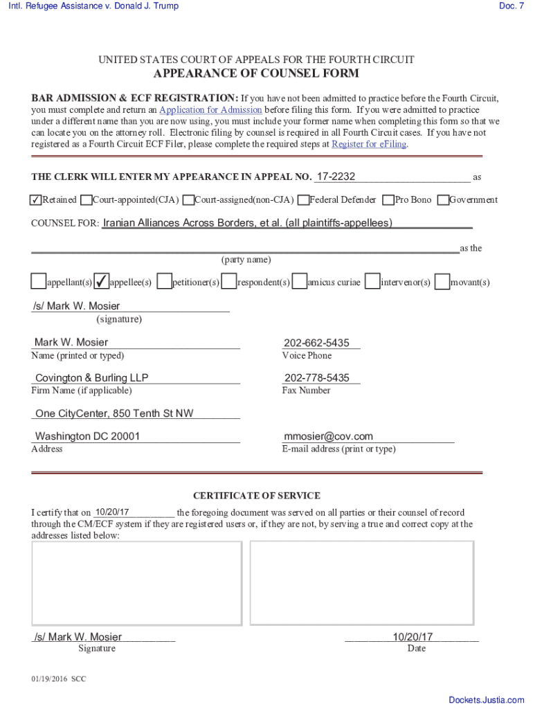 Get the free NONE. 17-2231 - Intl. Refugee Assistance v. Donald J. Trump