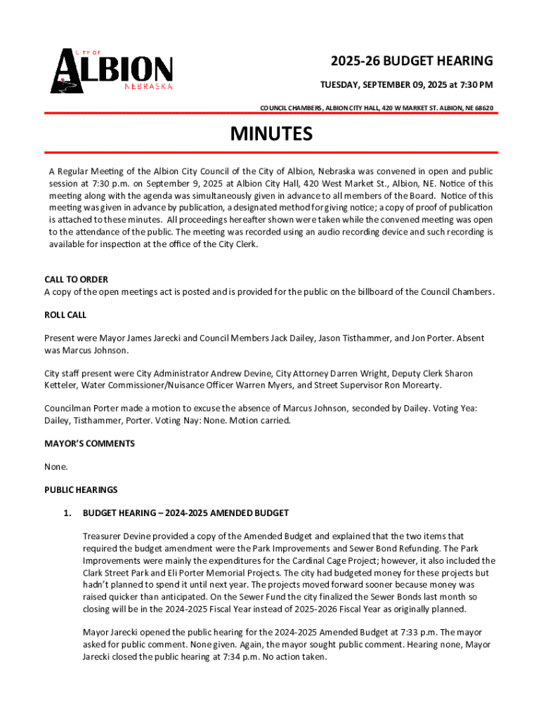 Get the free Budget Summary continued on Page 2 - Albion NE
