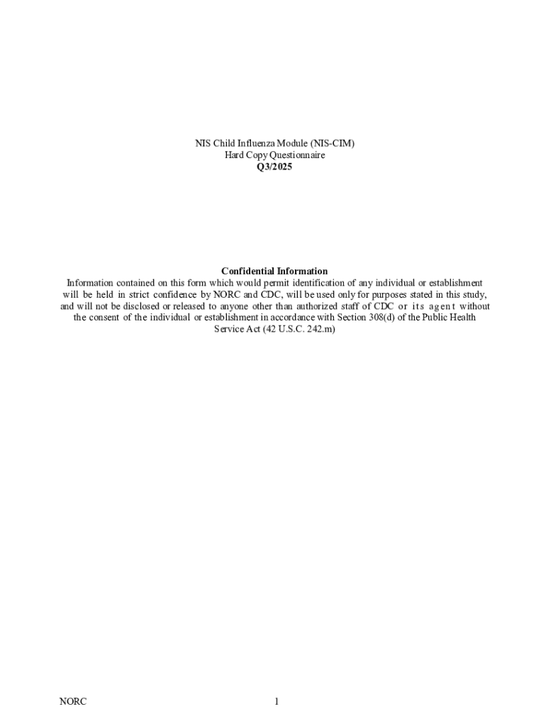 NIS Child Influenza Module (NISCIM) Hard Copy Questionnaire Q3/2025Confidential Information Information contained on this form which would permit identification of any individual or establishment