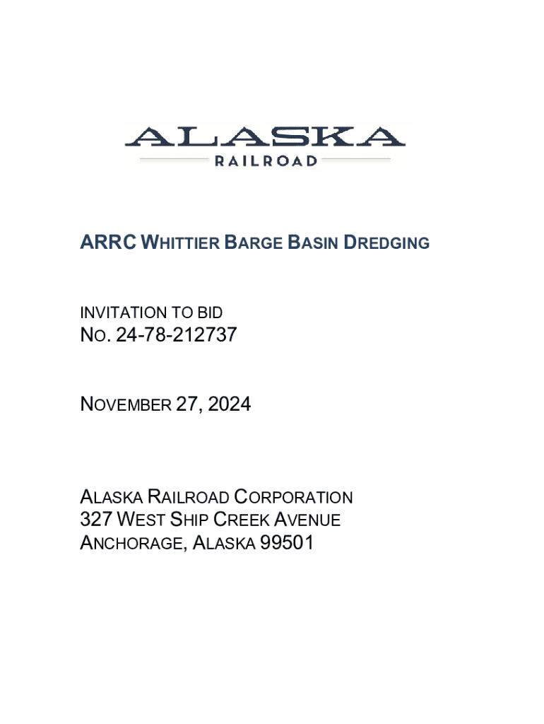 ARRC WHITTIER BARGE BASIN DREDGINGINVITATION TO BID NO. 2478212737NOVEMBER 27, 2024ALASKA RAILROAD CORPORATION 327 WEST SHIP CREEK AVENUE ANCHORAGE, ALASKA 99501ALASKA RAILROAD CORPORATION 327 W.