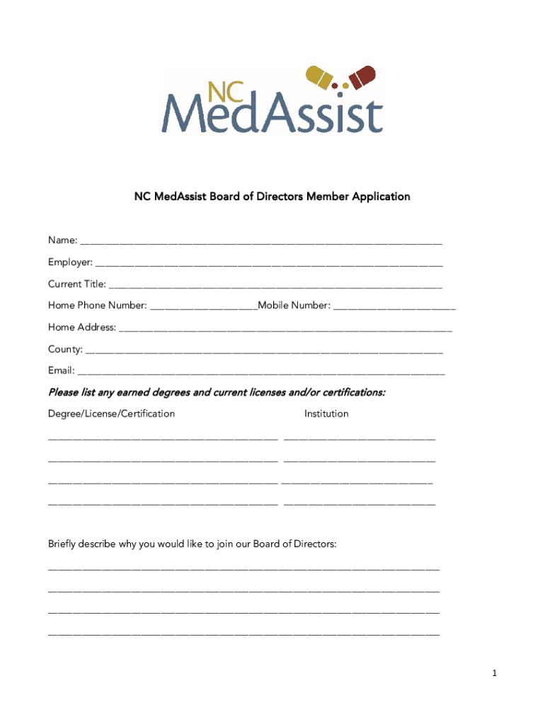 Get the free NC MedAssist Board of Directors Member Application
