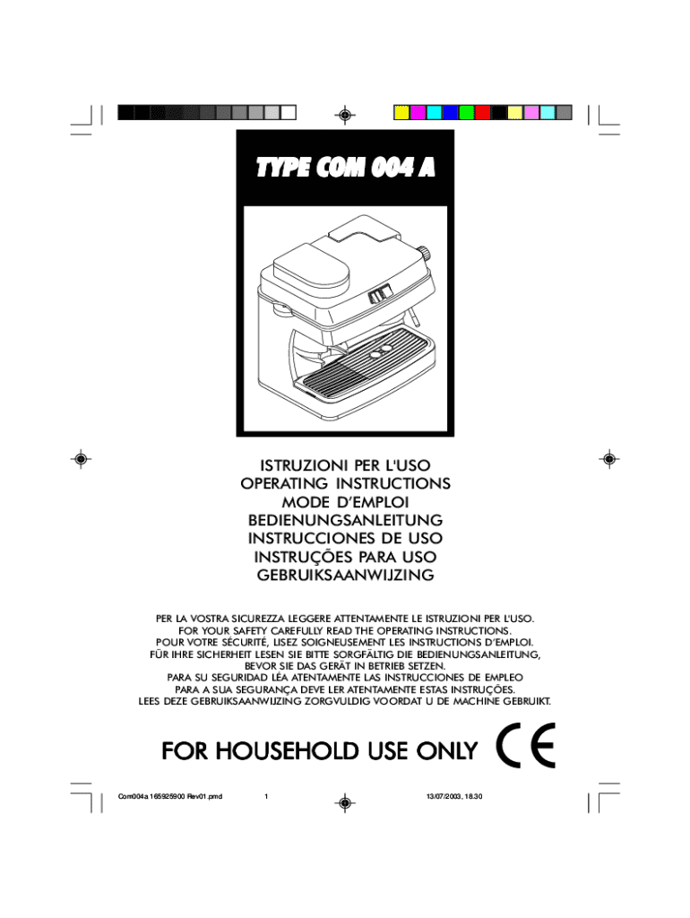 TYPE COM 004 AISTRUZIONI PER L\'USO OPERATING INSTRUCTIONS MODE DEMPLOI BEDIENUNGSANLEITUNG INSTRUCCIONES DE USO INSTRUES PARA USO GEBRUIKSAANWIJZING PER LA VOSTRA SICUREZZA LEGGERE ATTENTAMENTE LE