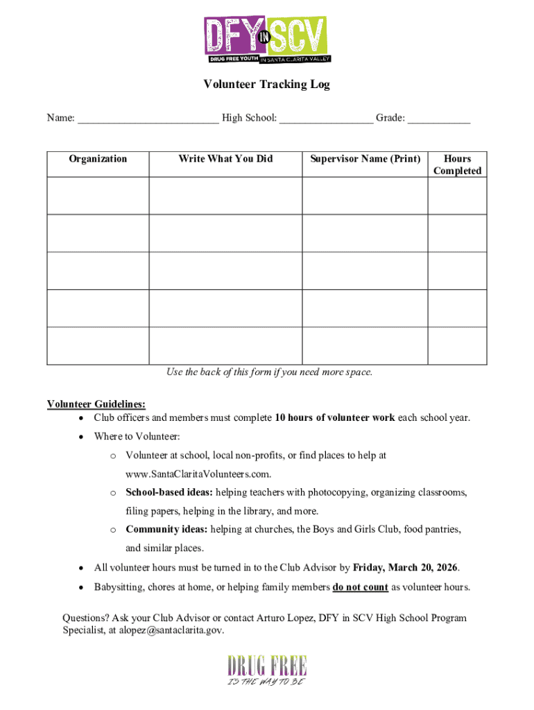 Additionally, some forms may include optional sections, such as participant contact info or performance feedback, allowing for more personalized entries. This information can be pivotal for future references or assessments of volunteer experiences.