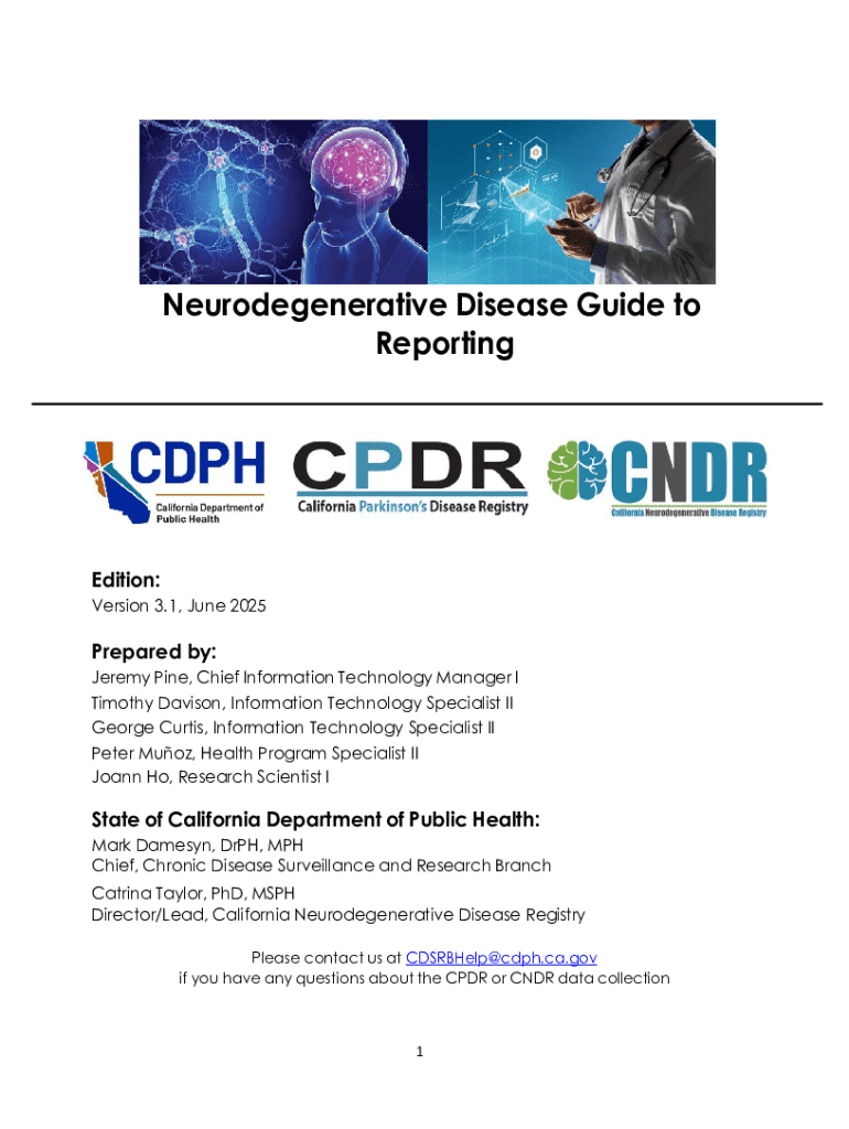 Get the free Neurodegenerative Disease Guide to Reporting - CDPH