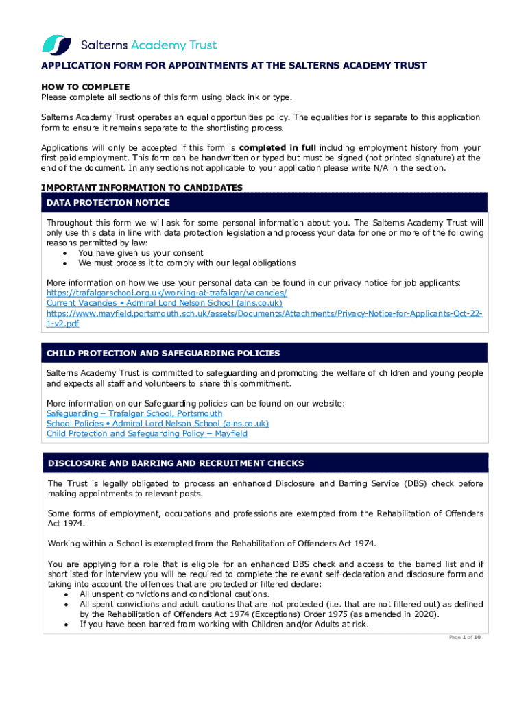 Get the free Application form for Appointments at the Salterns Academy ...