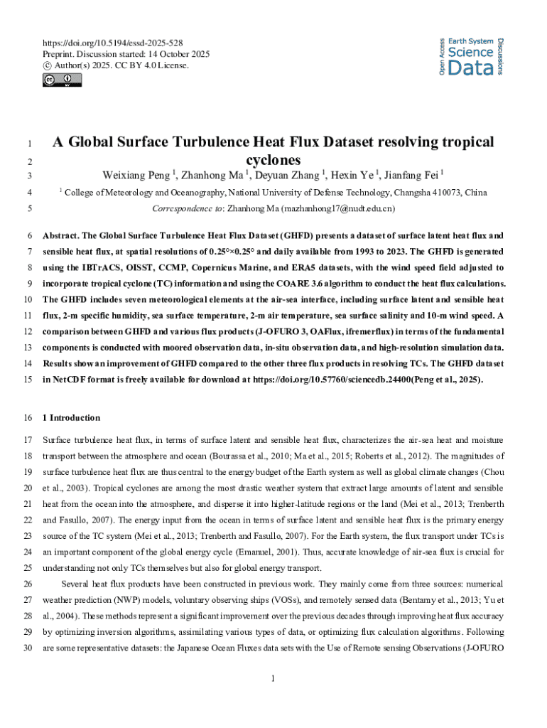 https://doi.org/10.5194/essd2025528 Preprint. Discussion started: 14 October 2025 c Author(s) 2025. CC BY 4.0 License.1 2 3 4A Global Surface Turbulence Heat Flux Dataset resolving tropical cyclones