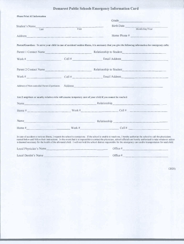 An emergency information card is a critical document designed to facilitate rapid response in critical situations involving students. This card serves as a quick reference for medical conditions, allergies, and emergency contacts. Its primary purpose is to ensure that caregivers, educators, and medical personnel have immediate access to vital information when time is of the essence.