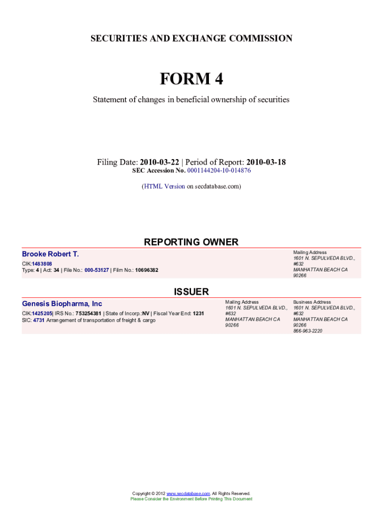 Get the free Brooke Robert T. (Form. Accession Number