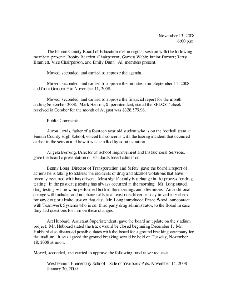 Get the free November 13, 2008 6:00 p.m. The Fannin County Board of ...