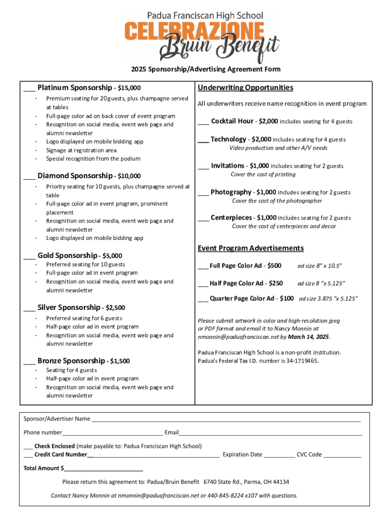 Get the free Bruin Benefit 2025 Sponsorship & Advertising Form.docx