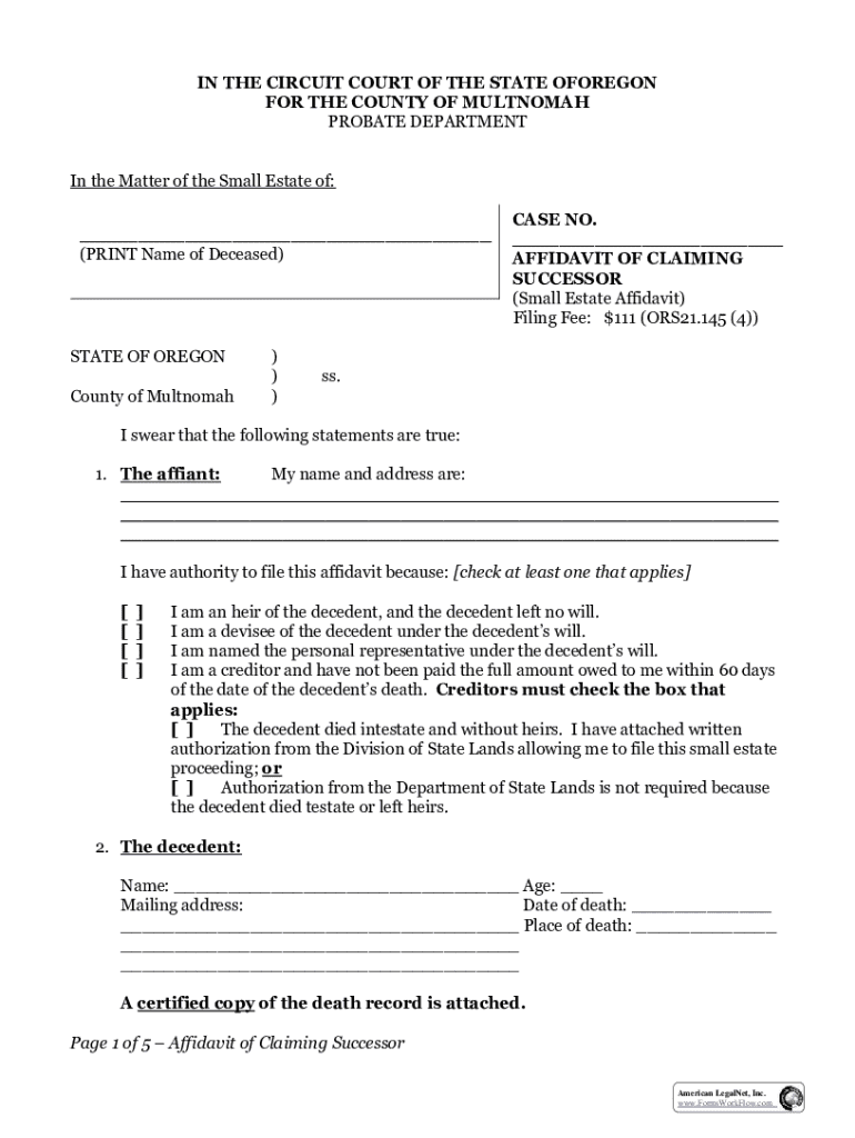 Get the free How to Use Oregon's Small Estate Affidavit Process