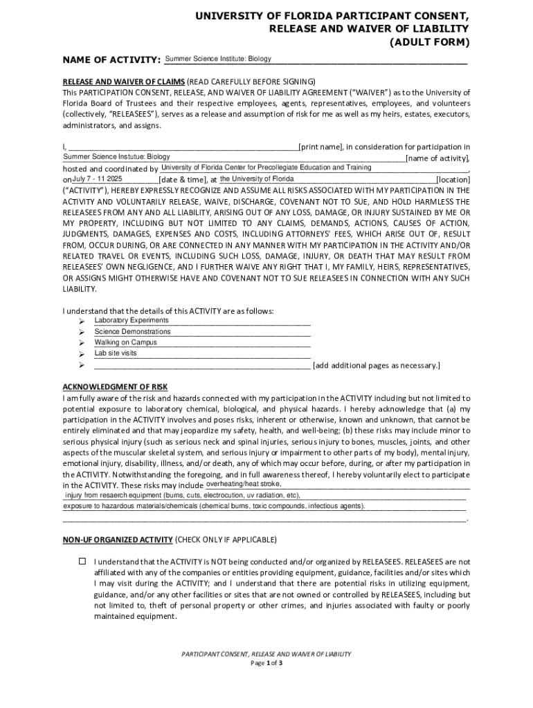 Get the free Non UF Youth Activity Parental Consent Waiver (Third Party ...