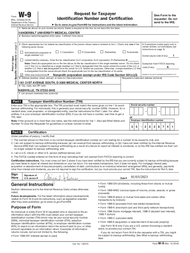 W9Form (Rev. October 2018) Department of the Treasury Internal Revenue ServiceRequest for Taxpayer Identification Number and CertificationGive Form to the requester. Do not send to the IRS.a Go to