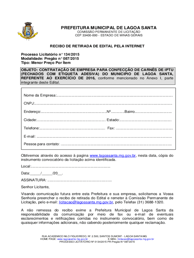Obtenha o gratuito OBJETO: CONTRATAO DE EMPRESA PARA CONFECO DE CARNS DE IPTU
