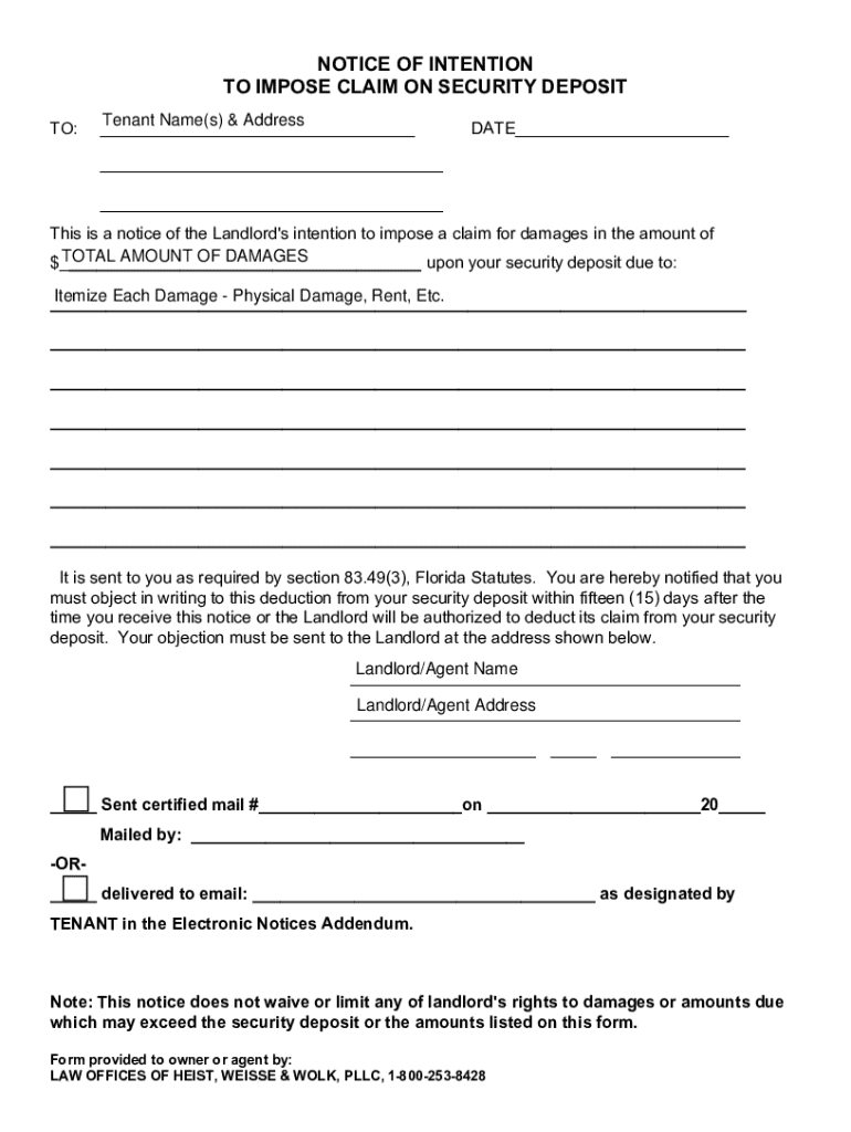 Get the free notification of intention to impose claim on security deposit