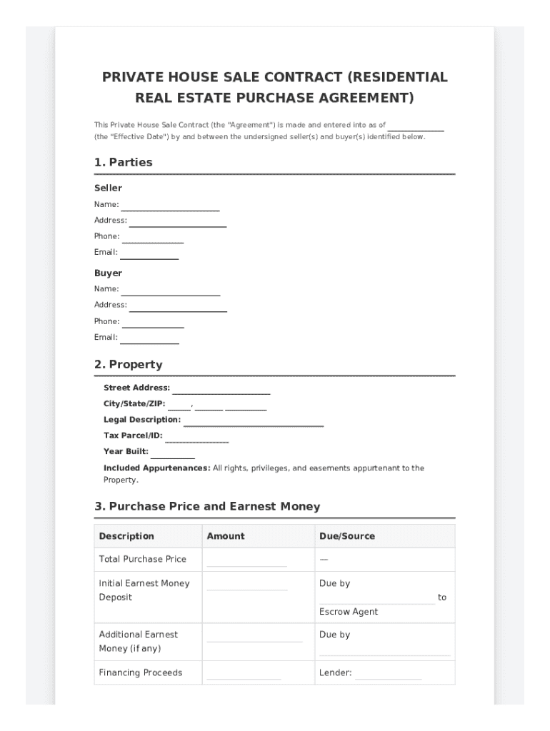 A private house sale contract is a legally binding document that outlines the terms and conditions agreed upon by the buyer and seller of a residential property.