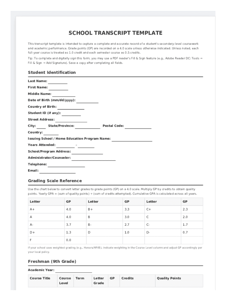 Filling out the school transcript template accurately requires attention to detail. Following systematic instructions will ensure that all critical components are captured without error.