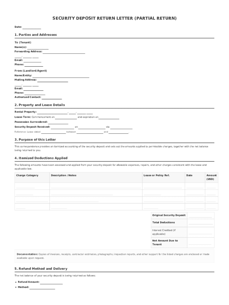 What is a Security Deposit Return Letter (Partial Return)?