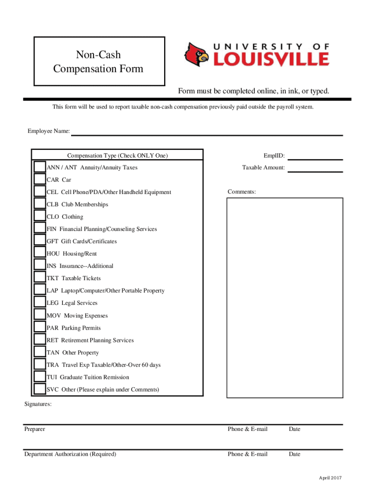Get the free Non-Cash Compensation Form. Non-Cash Compensation Form