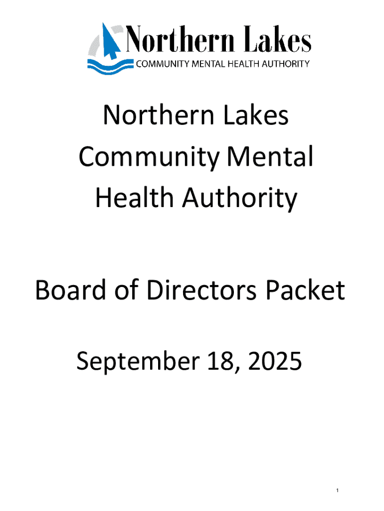 Northern Lakes Community Mental Health Authority Board of Directors Packet September 18, 20251The Northern Lakes Community Mental Health Authority Board will meet on September 18, 2025, at 2715 South
