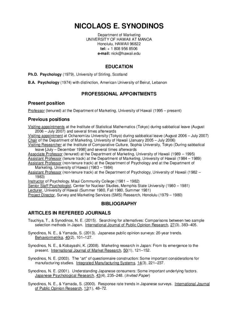 Get the free Nicolaos E. Synodinos's research worksUniversity of ... - shidler hawaii