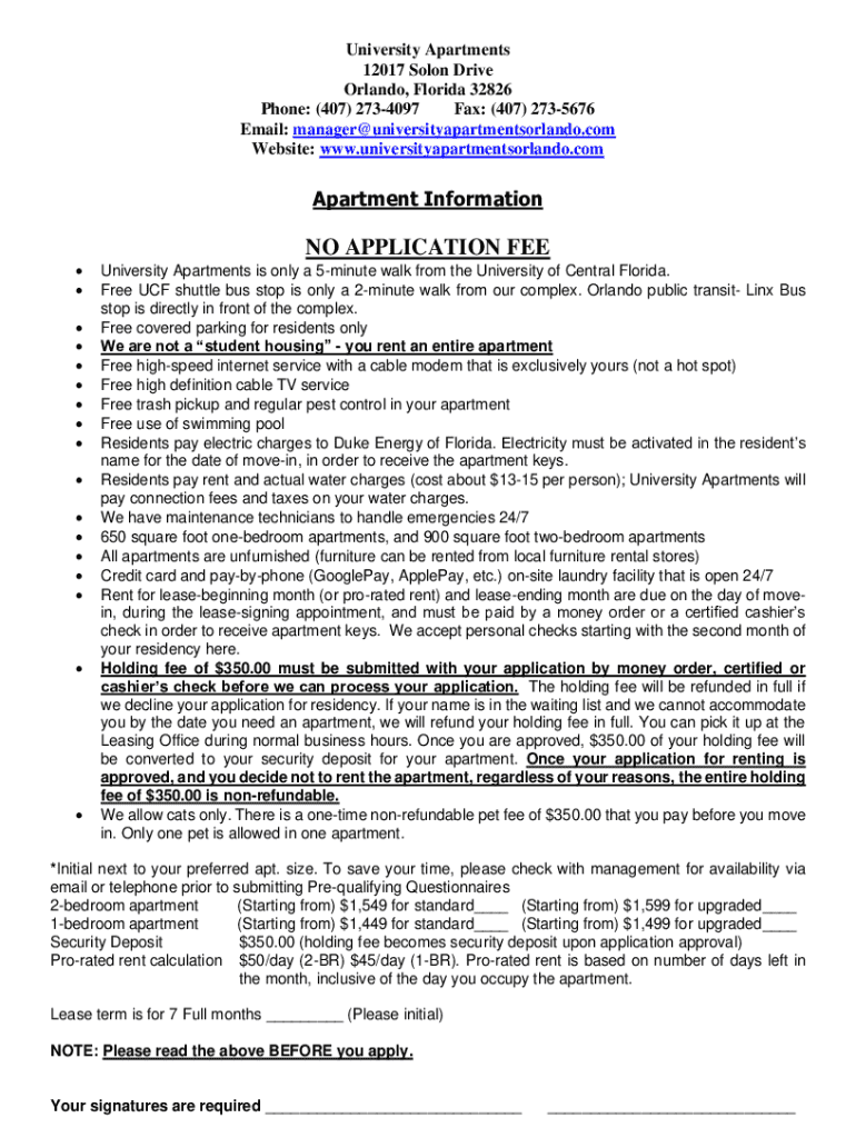 Get the free NO APPLICATION FEE - Orlando - University Apartments
