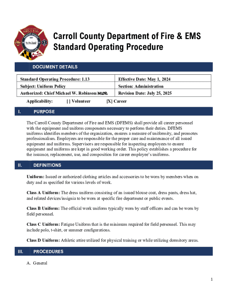 Get the free Carroll County Department of Fire & EMS Standard ...