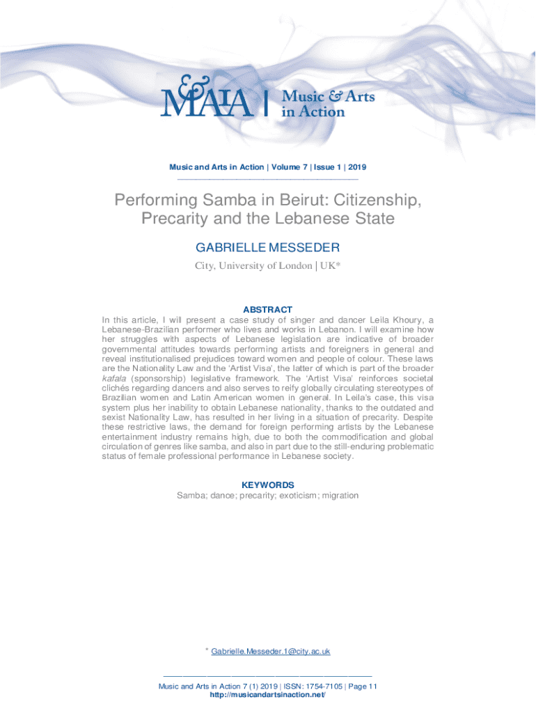 How to fill out performing samba in beirut