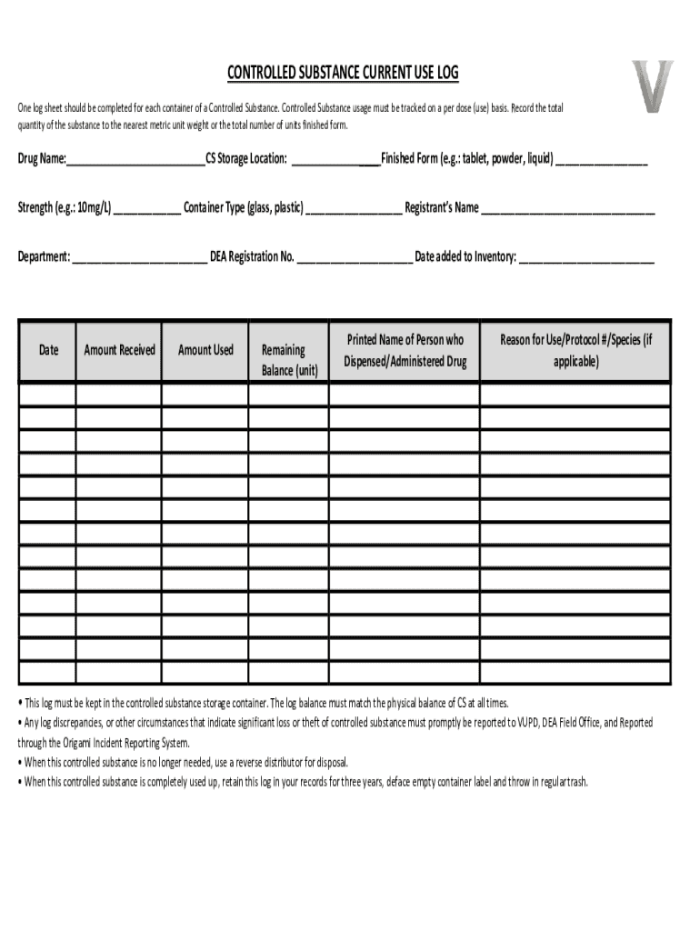 Get the free Form 7: Controlled Substance Current Use Log (DOCX