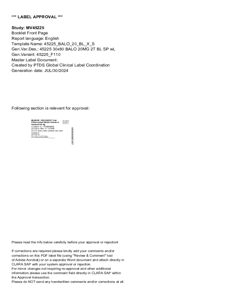 Get the free Blister with 2 film-coated tablets baloxavir marboxil 20 mg
