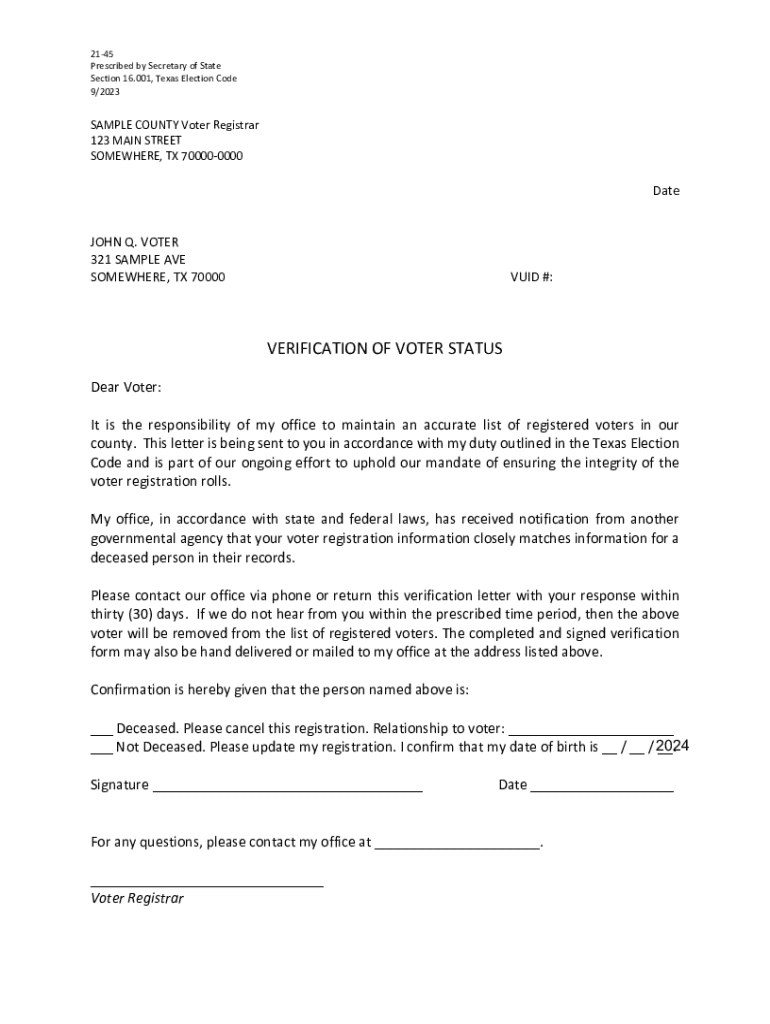 Get the free Notice of Examination for Death (Verification of Voter Status)1.28.15