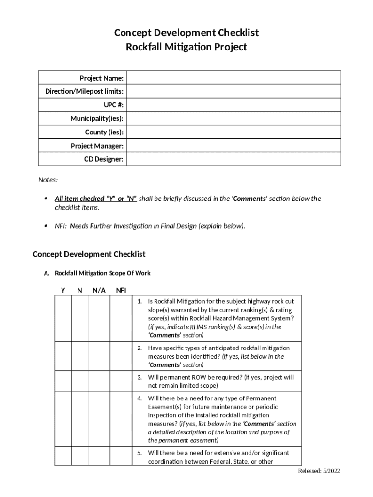 The LimitedScopeConceptDevelopmentPavementChecklist. Limited Scope is a writable document that can be completed and signed for specific purposes. In that case, it is furnished to the exact addressee in order to provide specific details of any kinds. The completion and signing is available in hard copy or using a trusted application e. g. PDFfiller. Such services help to complete any PDF or Word file without printing them out. It also lets you edit its appearance for the needs you have and put a valid digital signature. Once finished, the user ought to send the LimitedScopeConceptDevelopmentPavementChecklist. Limited Scope to the respective recipient or several of them by mail or fax. PDFfiller provides a feature and options that make your document of MS Word extension printable. It provides a variety of settings when printing out. It doesn't matter how you will file a form - physically or by email - it will always look professional and firm. To not to create a new writable document from the beginning over and over, turn the original Word file as a template. Later, you will have a rewritable sample.