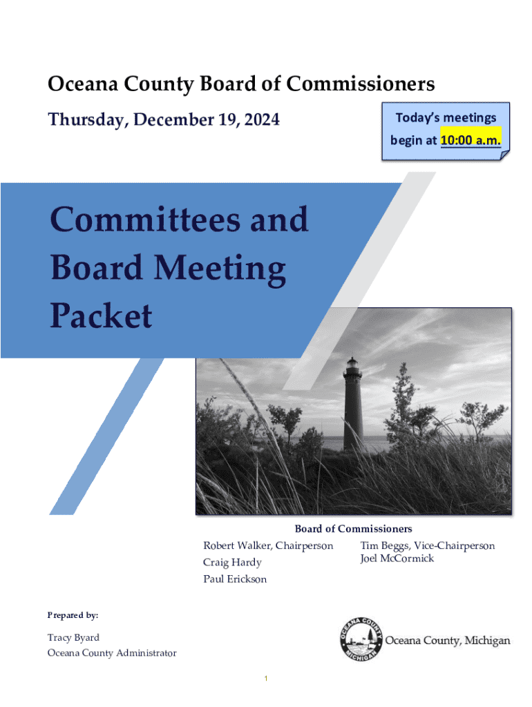 Get the free by order of the committee/board chairperson due to a lack of business: - oceana mi
