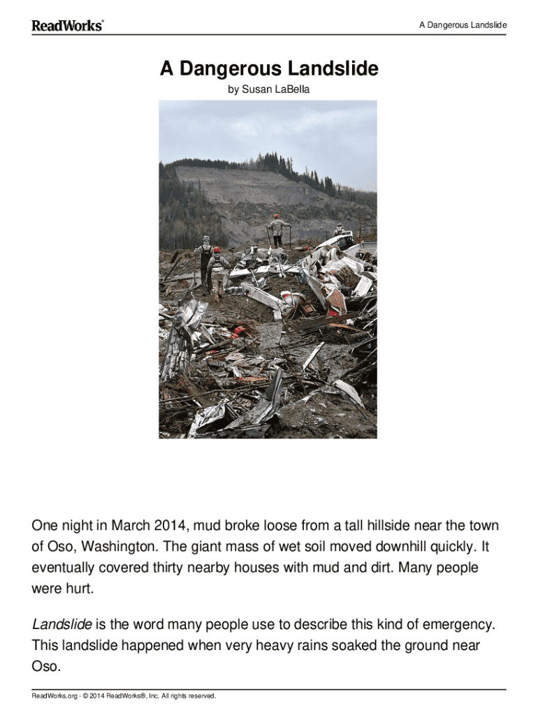 Get the free A Dangerous Landslide, Second Grade Reading Passage