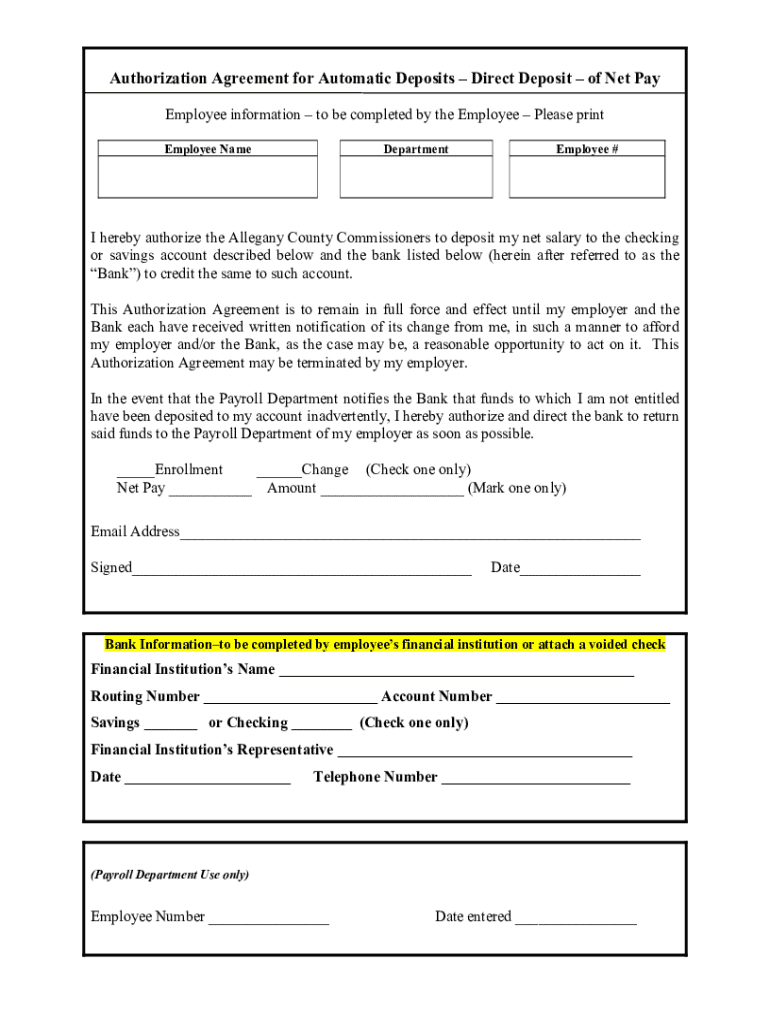 Get the free Direct Deposit Authorization Form For Employees In ...