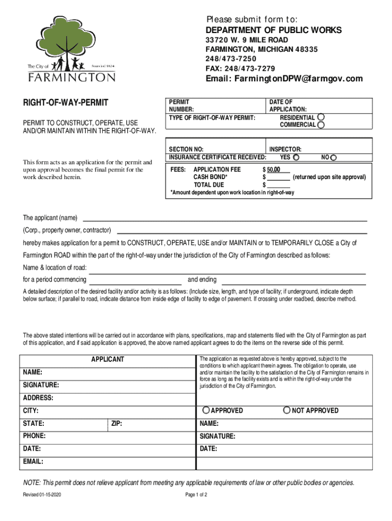 Get the free Forms and Permits - Farmington, MI - Muniweb