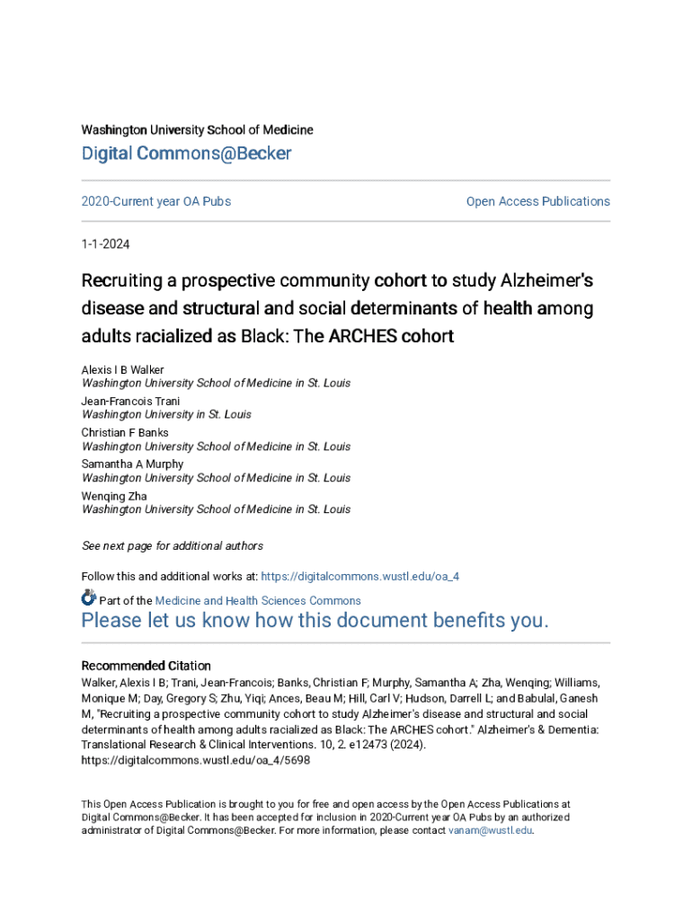 Get the free Recruiting a prospective community cohort to study Alzheimer's ...