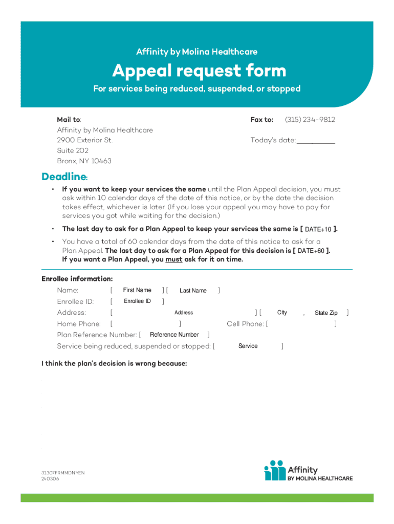 Get the free Appeal request form For services being reduced, suspended, or ...