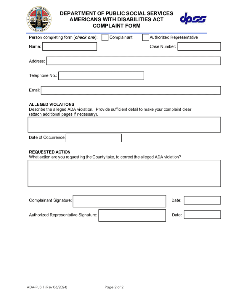 Get the free ADA-PUB 1, Complaint Form - Los Angeles