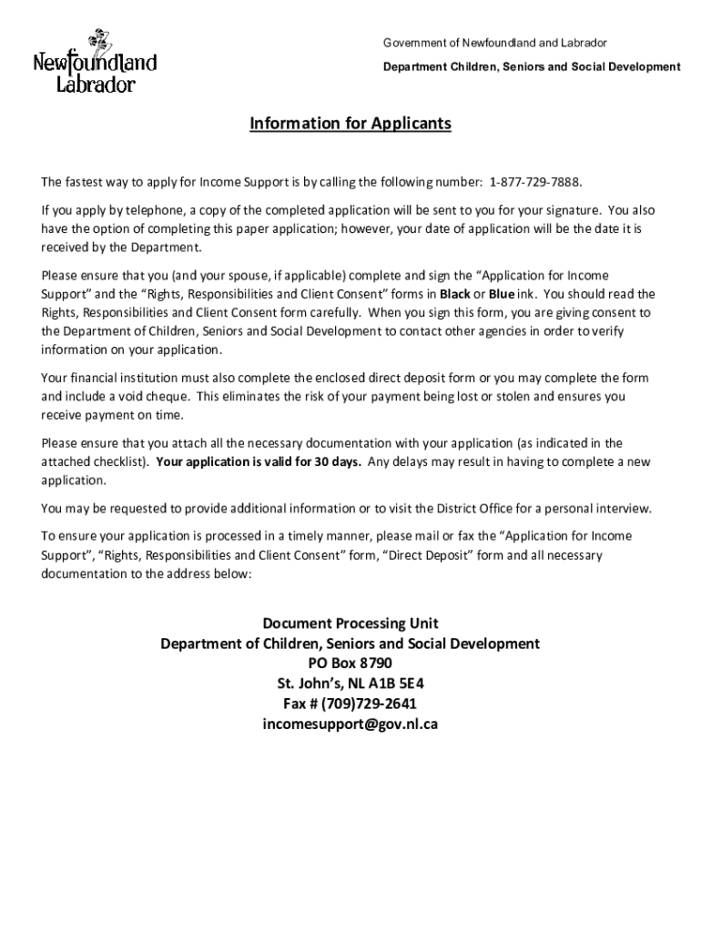 Get the free Newfoundland and Labrador Income Support Application ...
