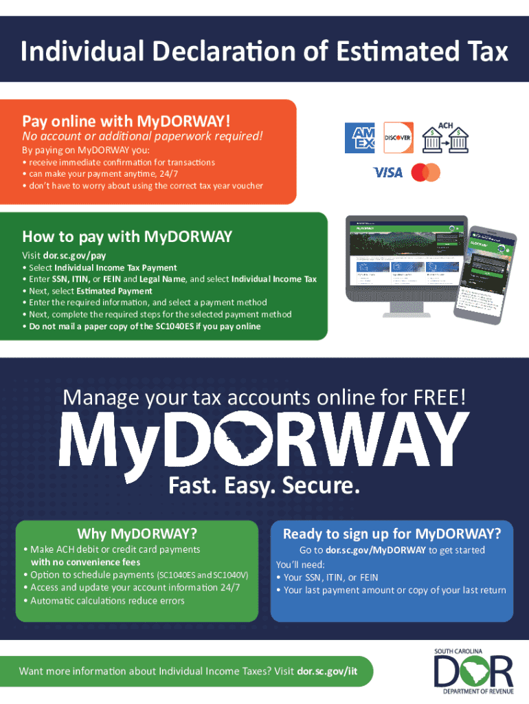 Individual Declaration of Estimated Tax Pay online with MyDORWAY!No account or additional paperwork required! By paying on MyDORWAY you: receive immediate confirmation for transactionscan make your