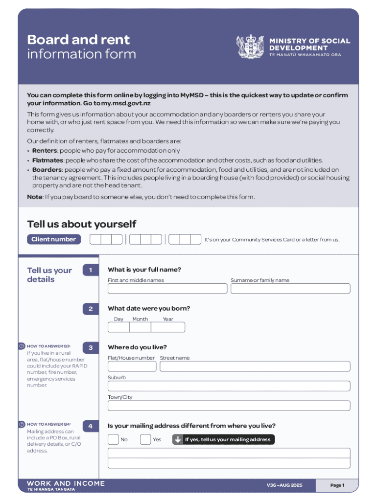 Get the free Board and rent information formV36. This form gives us information about a persons a...