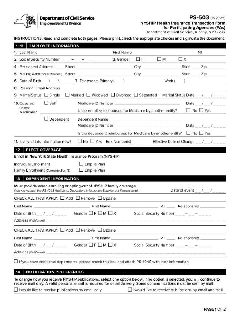 The New York State Health Insurance Program (NYSHIP) serves as a vital resource for eligible state employees, enabling access to comprehensive health insurance. The NYSHIP health insurance transaction form is an essential document that allows individuals to manage their health insurance coverage effectively. This form plays a crucial role in ensuring that employees can enroll in health plans, update their information, or make necessary changes due to personal circumstances.