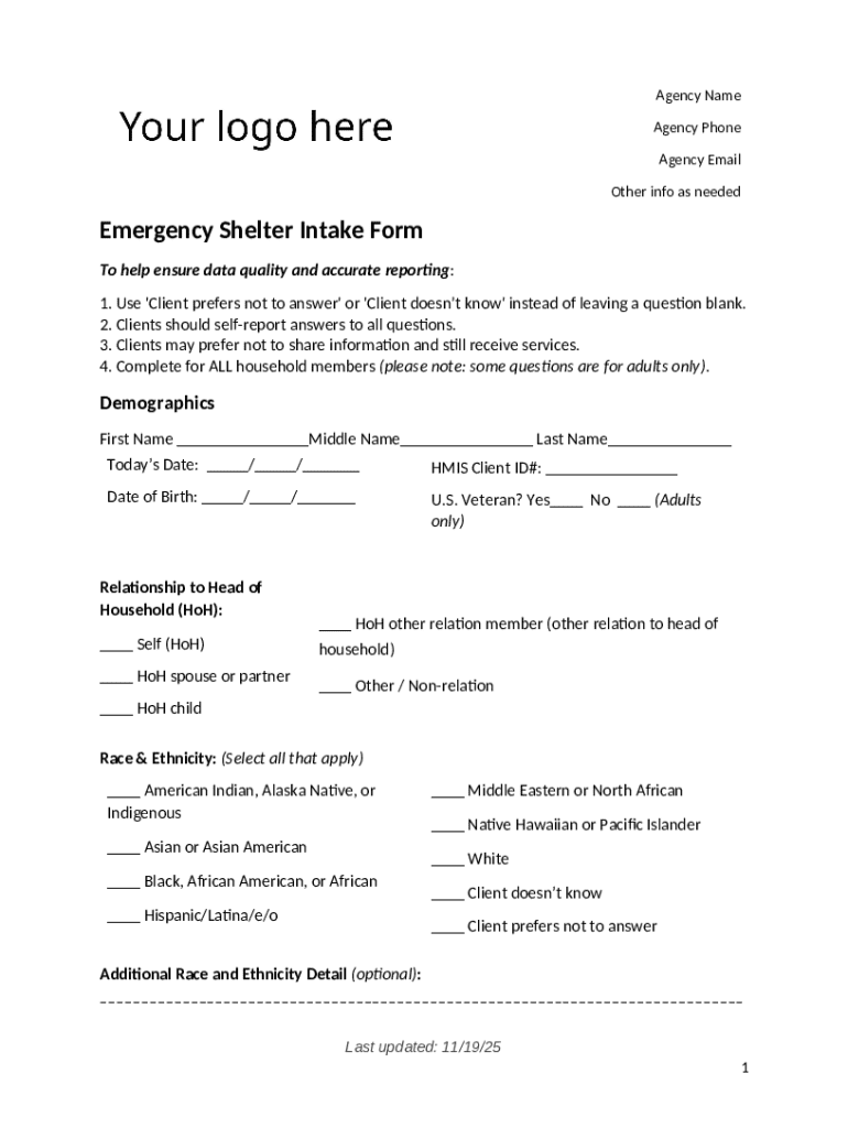 Frequently asked questions about the form Night-by-Night ("Overnight") Shelter Intake Template