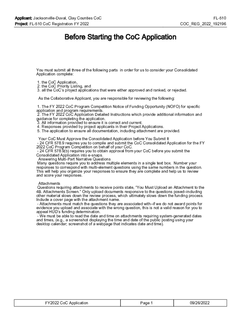 Applicant: JacksonvilleDuval, Clay Counties CoC Project: FL510 CoC Registration FY 2022FL510 COC_REG_2022_192196Before Starting the CoC ApplicationYou must submit all three of the following parts