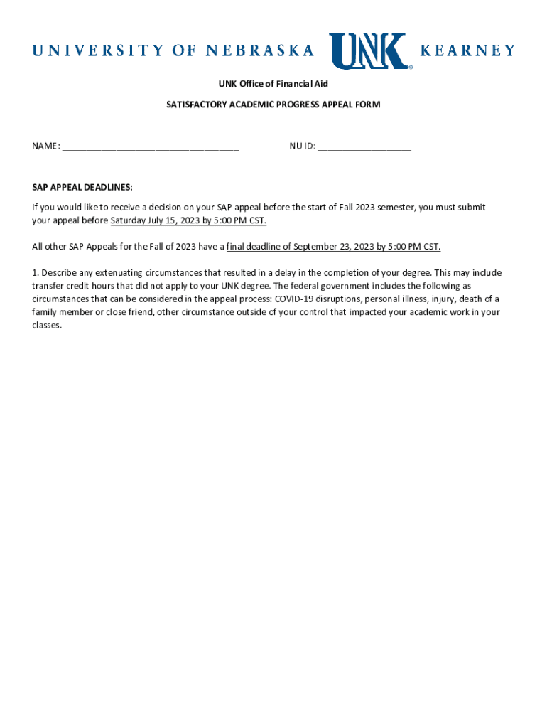 Get the free If you would like to receive a decision on your SAP appeal before the start of Fall ...
