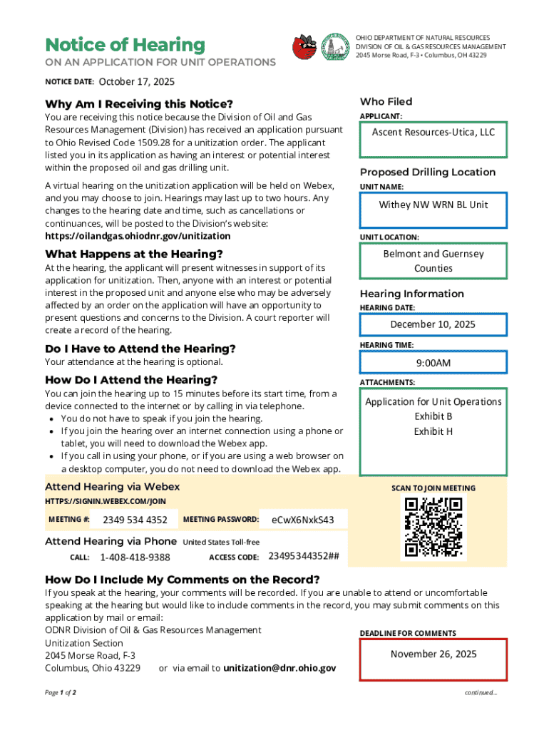 Get the free Oil and Gas Unitization Hearing - Withey NE WRN BL Unit