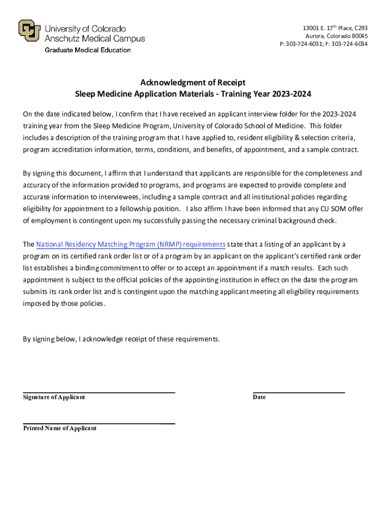 The NRMP acknowledgment sleep medicine form is a crucial document for applicants aiming to pursue a residency in sleep medicine. This form serves to formally acknowledge the responsibilities and requirements associated with the residency matching process. Completing this form accurately is of utmost importance as it directly impacts one's residency application and the chances of matching with a desired program.
